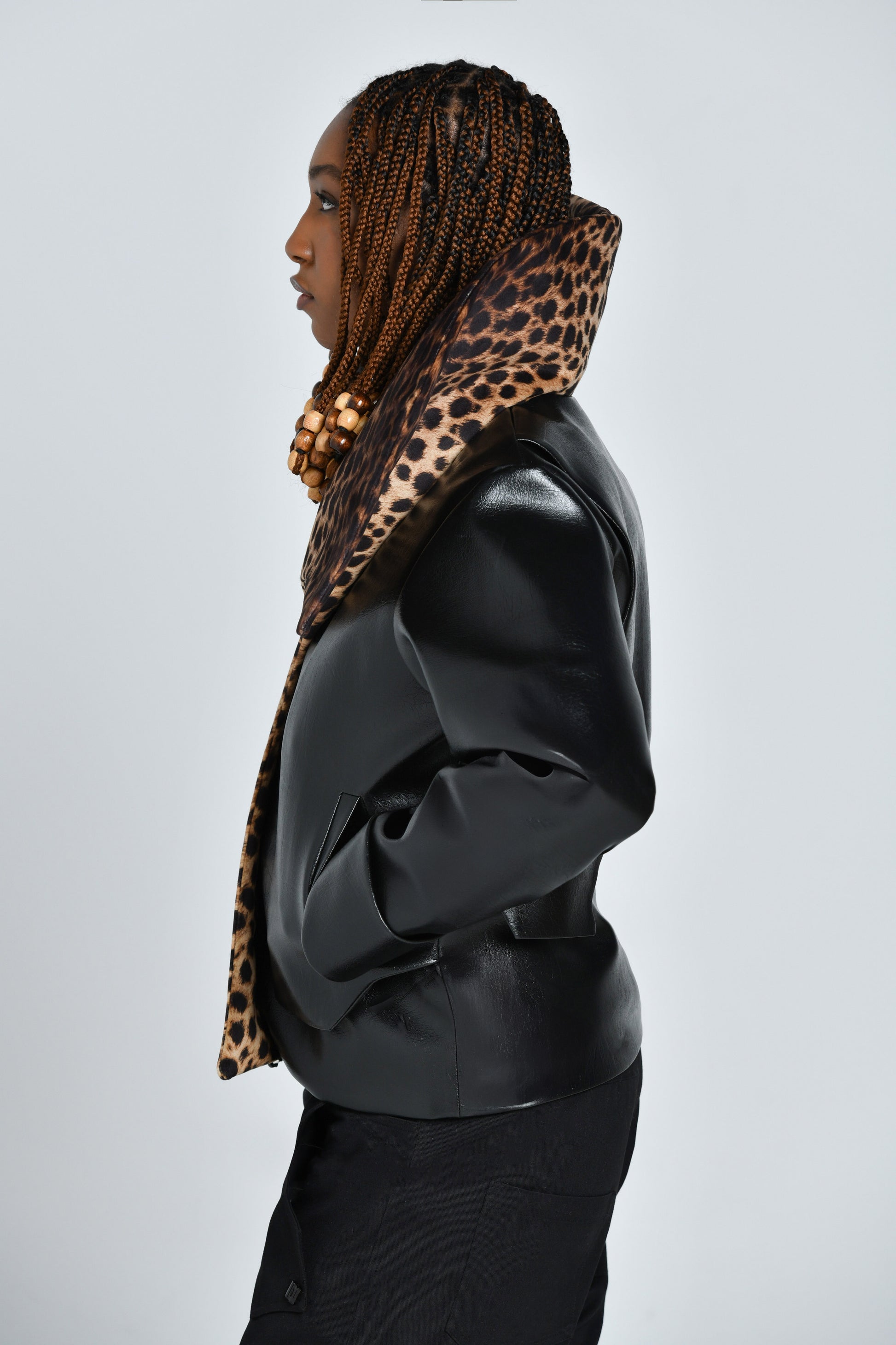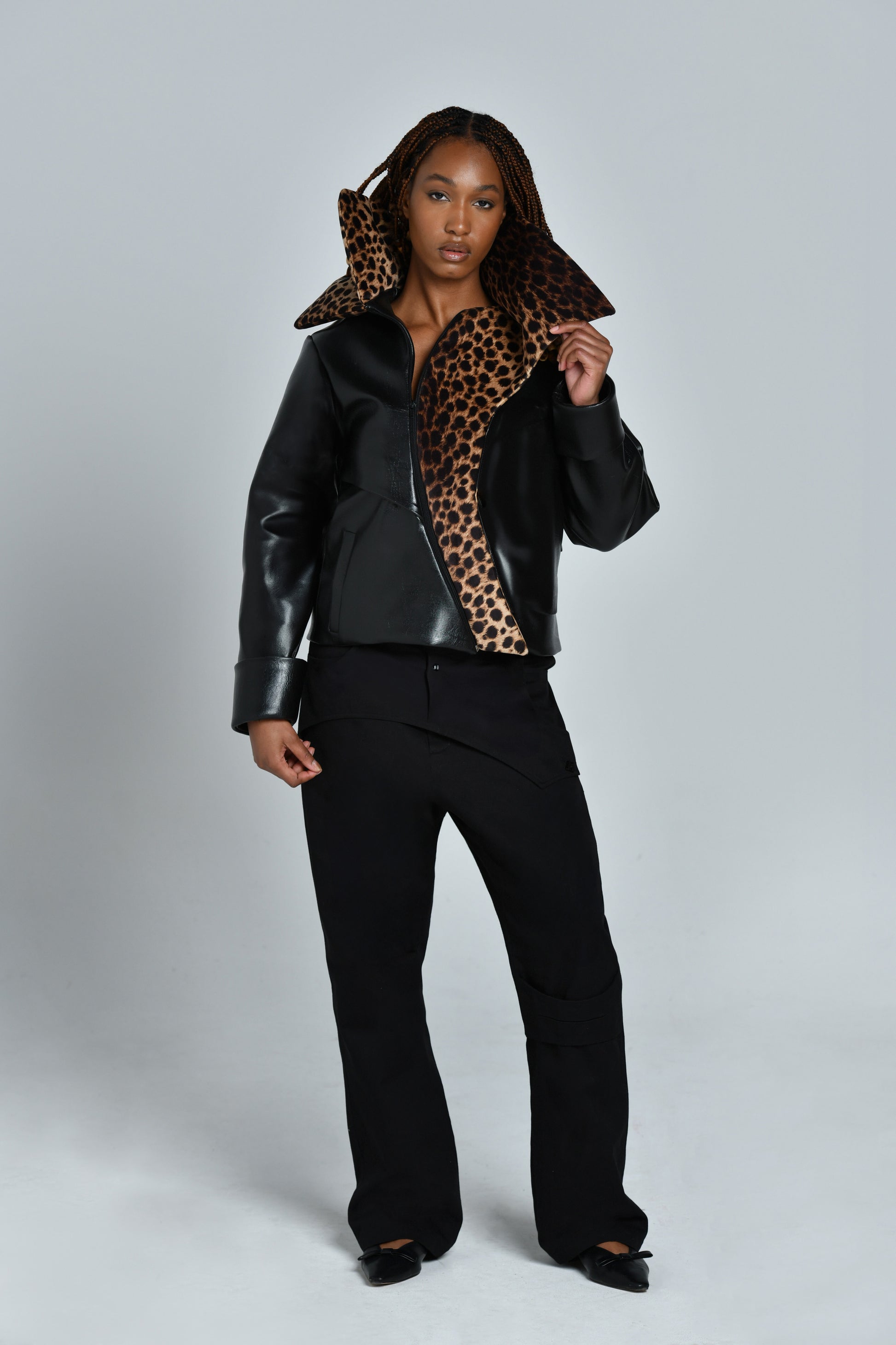 Sa couleur noir ciré, son imprimé léopard et son empiècement dorsale signature jmakxparis viennent accentuer l’unicité de cette création.