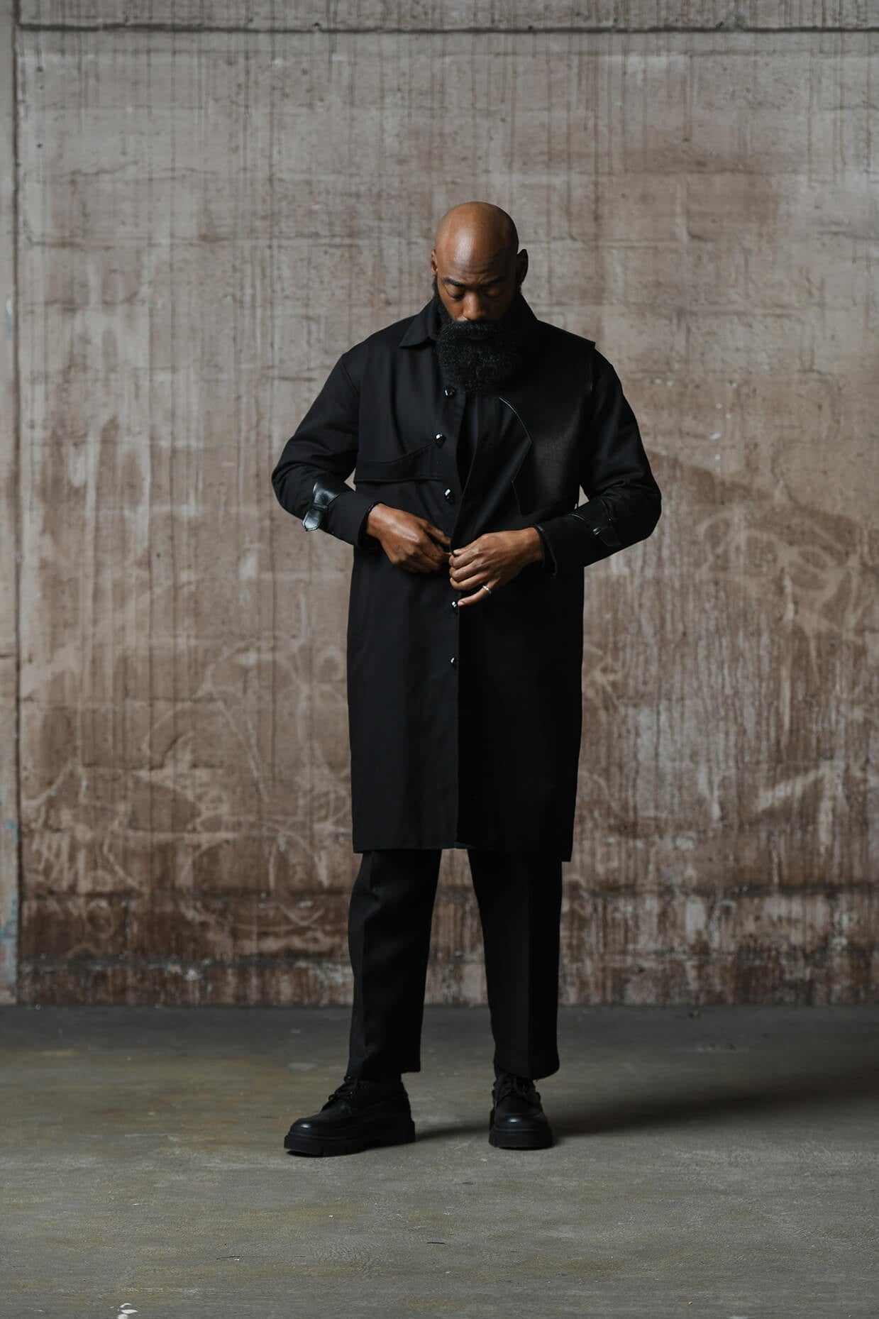 Ce trench se distingue par sa silhouette intemporelle. Confectionné en coton noir, il propose une